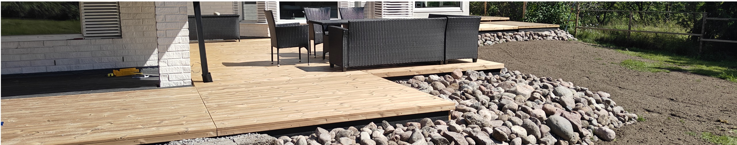 Vi måste säga att vi är nöjda. Arbetet gick smidigt, leveransen kom som överenskommet och kommunikationen fungerade perfekt. Dessutom ser terrassen mycket bättre ut än vi ens vågat föreställa oss. Nästa steg är att använda de användbara materialen från den gamla terrassen till att bygga planteringslådor och få in lite grönt.
