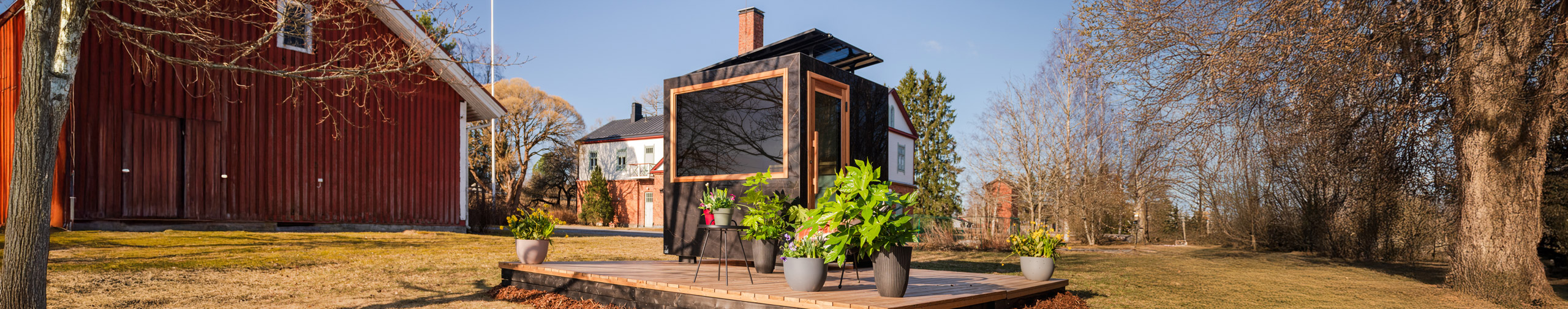 Kirami FinVision®-sauna Zero-serien inbjuder till avkoppling även på mindre gårdar och sommarstugor – energieffektivt.