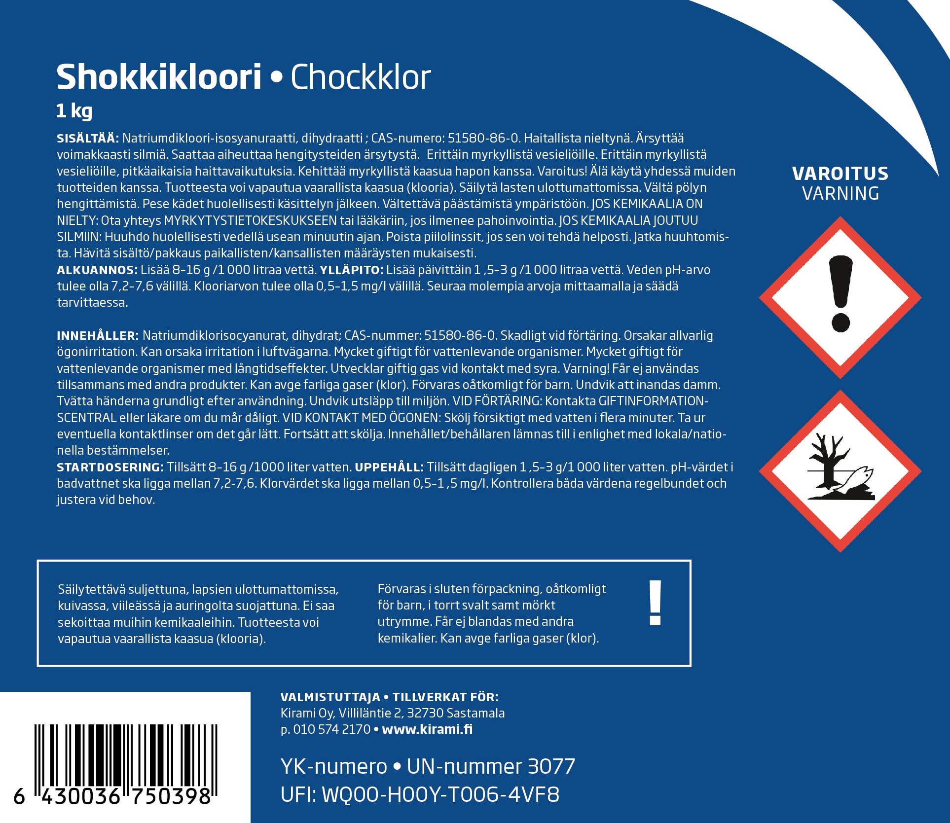 Det stabiliserade chockkloret används för att chokklorera badvattnet men det kan även användas för att uppehålla klornivån.