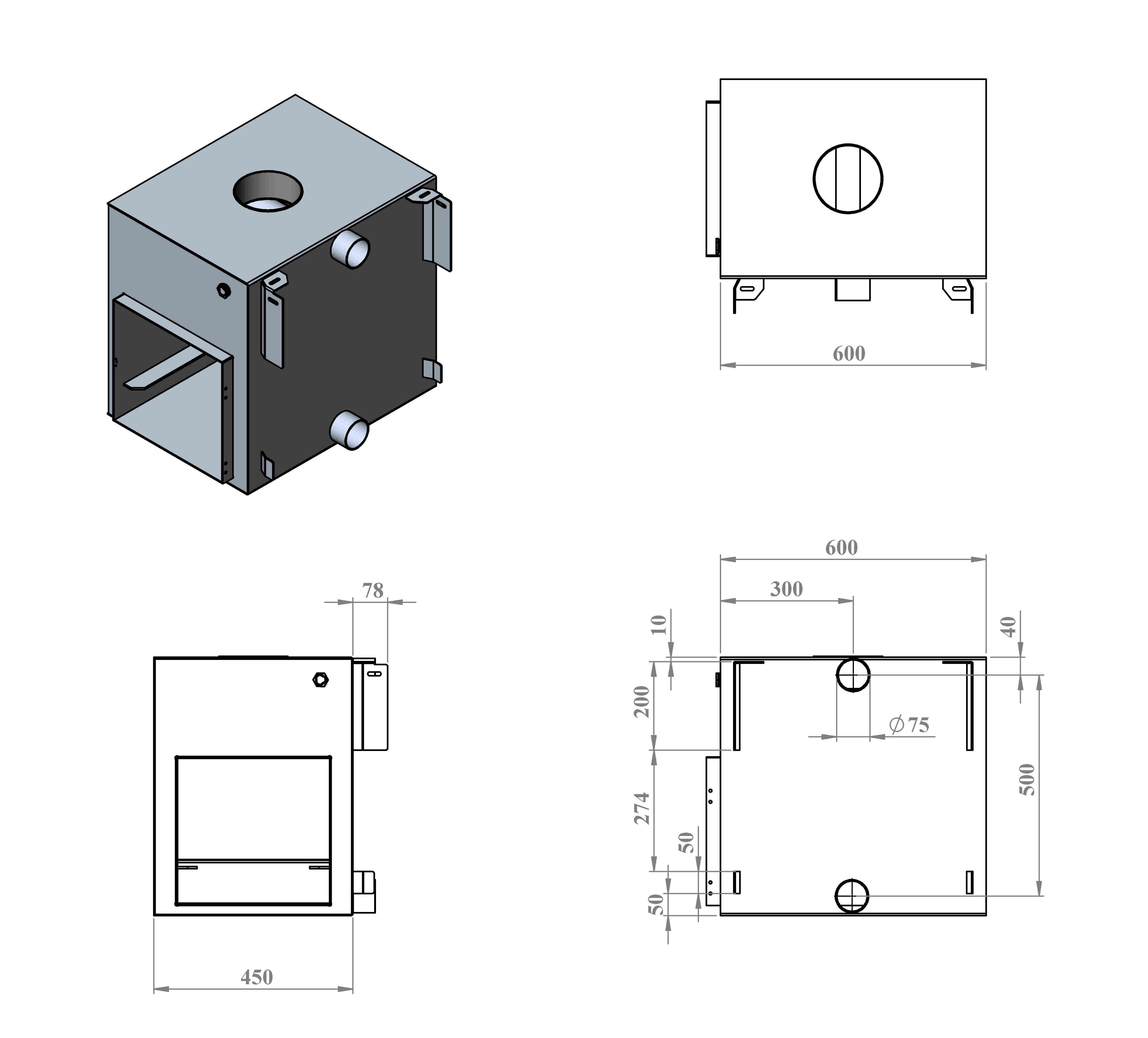 Alla Kirami kaminer är tillverkade i vår egen produktionsanläggning av högklassig, mycket väl värmeledande AlMg3 marinaluminium. Vi provtrycker alla våra kaminer innan de säljs. 150 mm skorsten är lämplig för denna värmare.