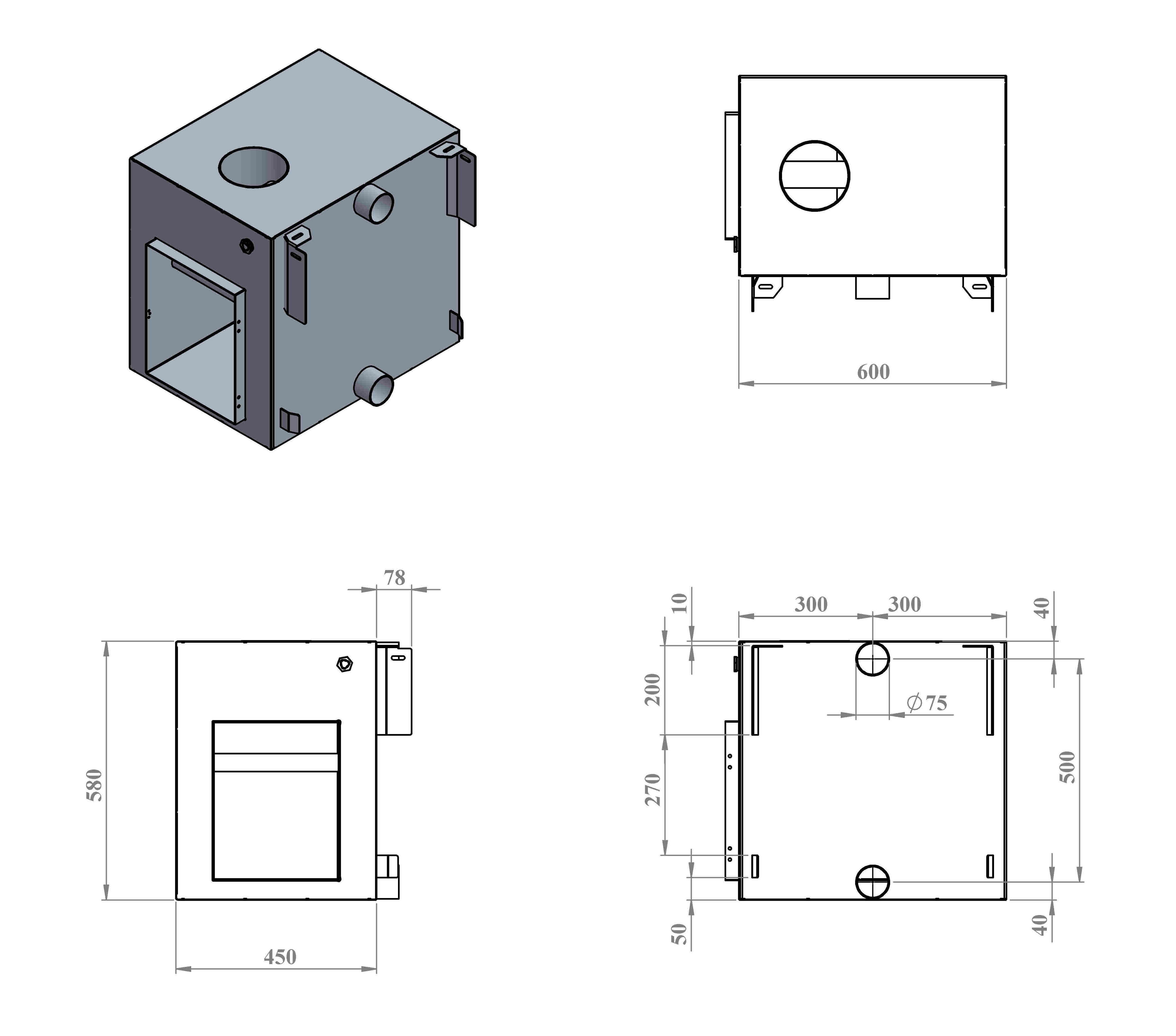 Alla Kirami kaminer är tillverkade i vår egen produktionsanläggning av högklassig, mycket väl värmeledande AlMg3 marinaluminium. Vi provtrycker alla våra kaminer innan de säljs. 150 mm skorsten är lämplig för denna värmare.