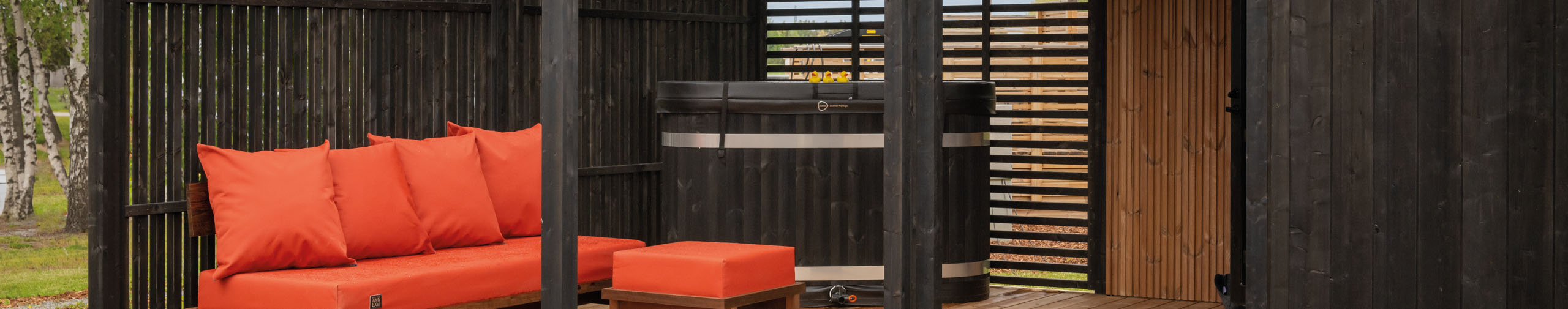 Pergolan i större storlek är en utmärkt tilläggsdel till de övriga Misty-modulerna. Pergolan kan användas även som en separat modul, såsom t.ex. en mer skyddad viloplats eller ett mer skyddat sommarkök. I den större pergolan finns det plats för t.ex. en soffa, badtunna eller eluppvärmbar balja. Skydda pergolan med Kirami FinVision®-insynsskydd och klängväxter samt dekorera pergolan med hängande lampor.